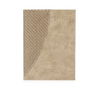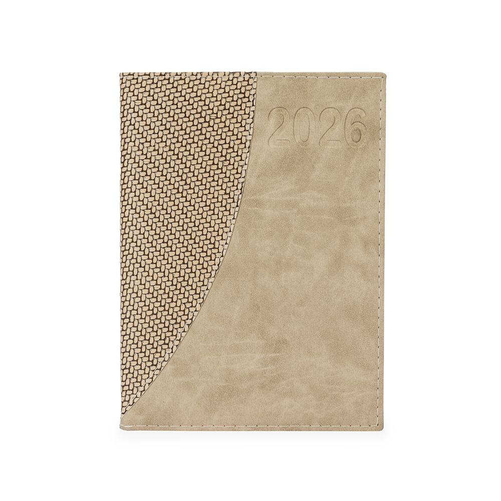 Descrição: Agenda diária 2026 de couro sintético. Contém fita de cetim marca página, dados pessoais, calendário de 2024, 2025 à 2026, mapa do Brasil, mapa-múndi, índice telefônico e planejamento