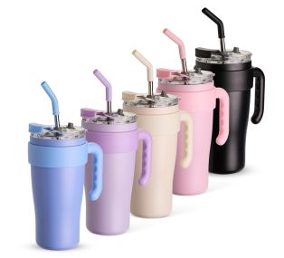 Descrição: Caneca térmica em inox com capacidade máxima de 800ml. Possui estrutura em parede dupla, alça ergonômica em plástico, tampa rosqueável com vedação a vácuo, protetor para bocal e acesso para canudo com tampa em silicone. Acompanha canudo de inox com ponta de silicone removível.
