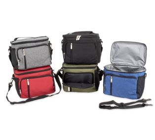 Descrição: Bolsa térmica de poliéster com três compartimentos, capacidade de 9 litros. A bolsa possui revestimento térmico em PEVA atóxico com costura soldada (não vaza), alça de mão, bolsos laterais telados e acompanha alça transversal.