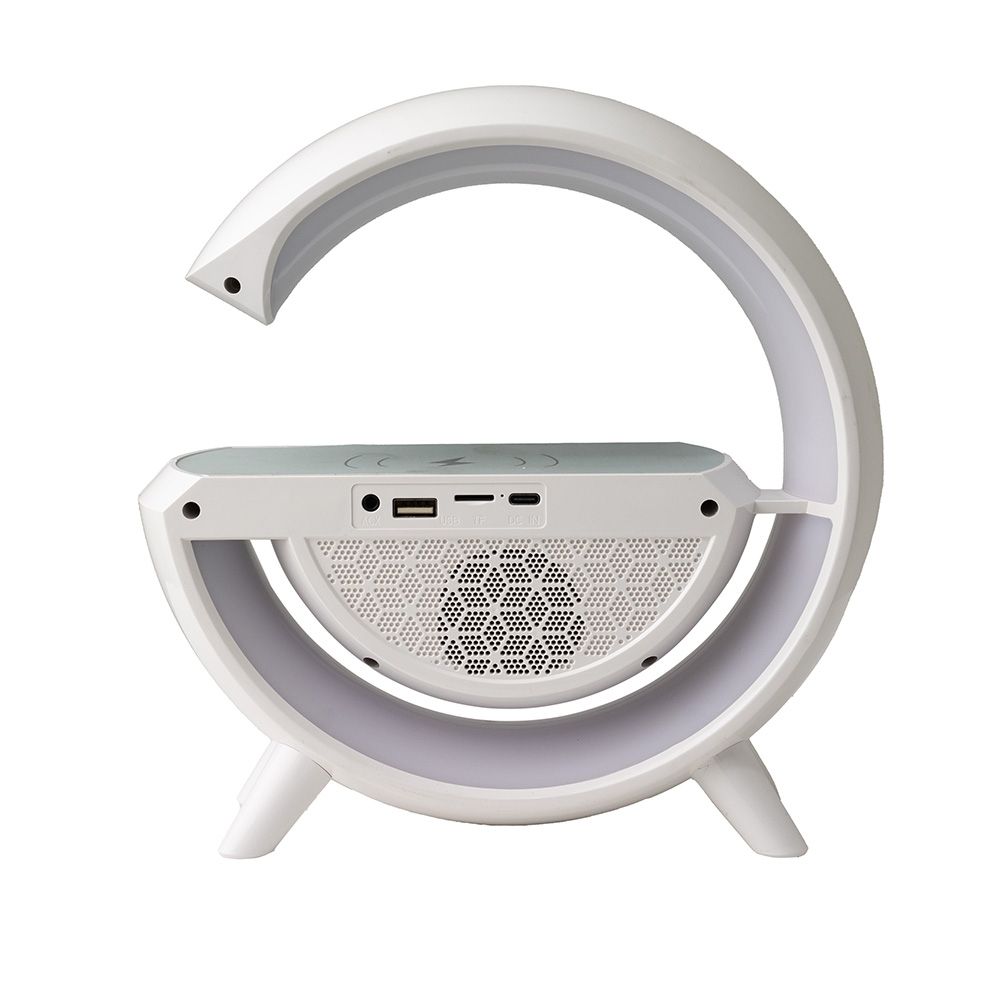 Descrição: Caixa de som com carregador por indução e luminária. Possui 6 modos de iluminação, opera nos modos bluetooth, rádio FM, auxiliar P2, USB e TF (cartão MicroSD). Para desfrutar do carregamento por indução (sem fio) é fundamental que o celular possua a tecnologia QI, o produto só armazena bateria para funcionamento próprio, para funcionar a indução precisa estar conectado a uma fonte de energia.