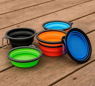 Descrição: Tigela retrátil para pets feita em silicone com borda plástica equipada com encaixe para mosquetão e capacidade de até 350ml. Acompanha mosquetão metálico para facilitar o transporte.